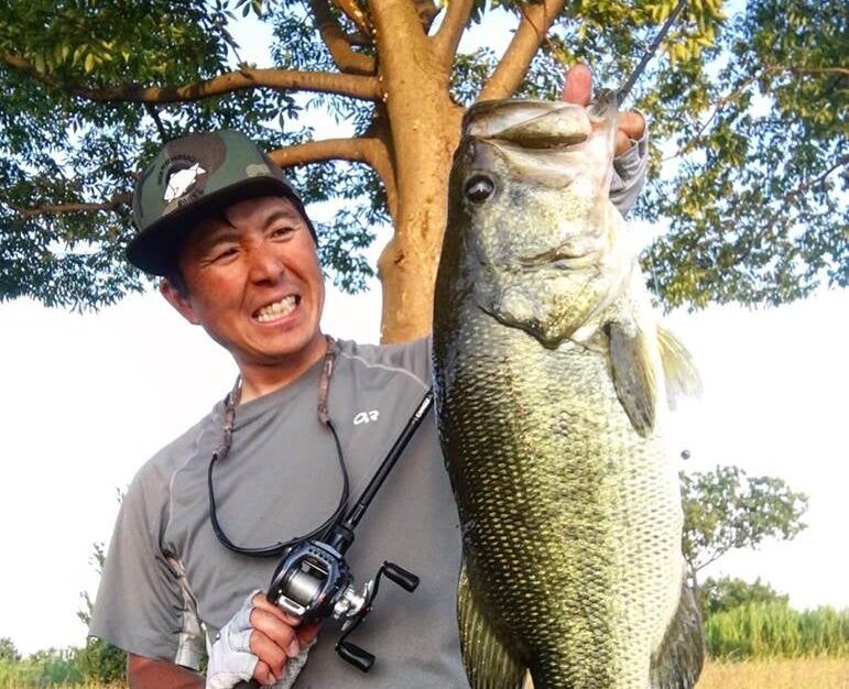 またバジングフロッグのように、濃いマットの上を叩きながら泳がせるヨコの釣り。