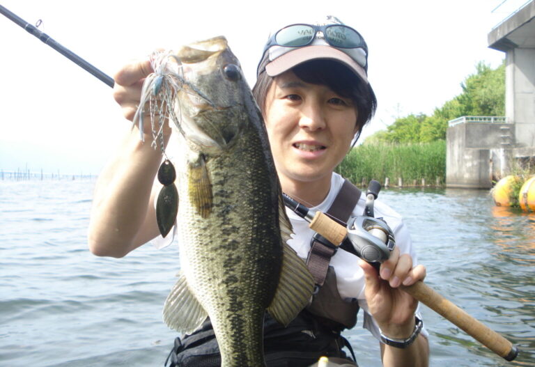 スピナーベイトをロングキャスト、ボトムをとってスローローリングすると、、、