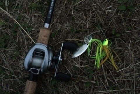 強気に風の当たる葦際をスピナーベイトでスローに引くと、、、